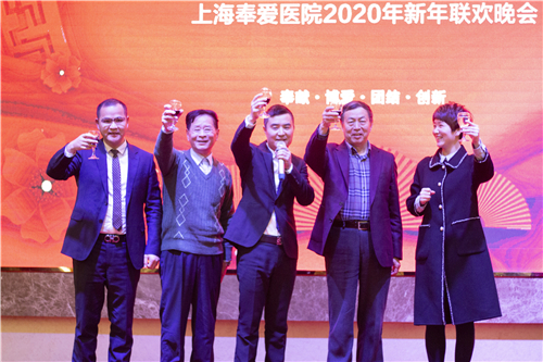 新年晚会分两个部分,晚宴环节、节目表演环节。晚宴开始前,首先由上海奉爱医院总经理林国炳先生致新年贺词,林总代表医院领导班子向一年来辛勤工作、无私奉献和坚守临床一线岗位的职工们,向长期关心支持帮助医院的各级领导们、社会各界朋友们、职工家属们,致以诚挚的问候和新春的祝福。
