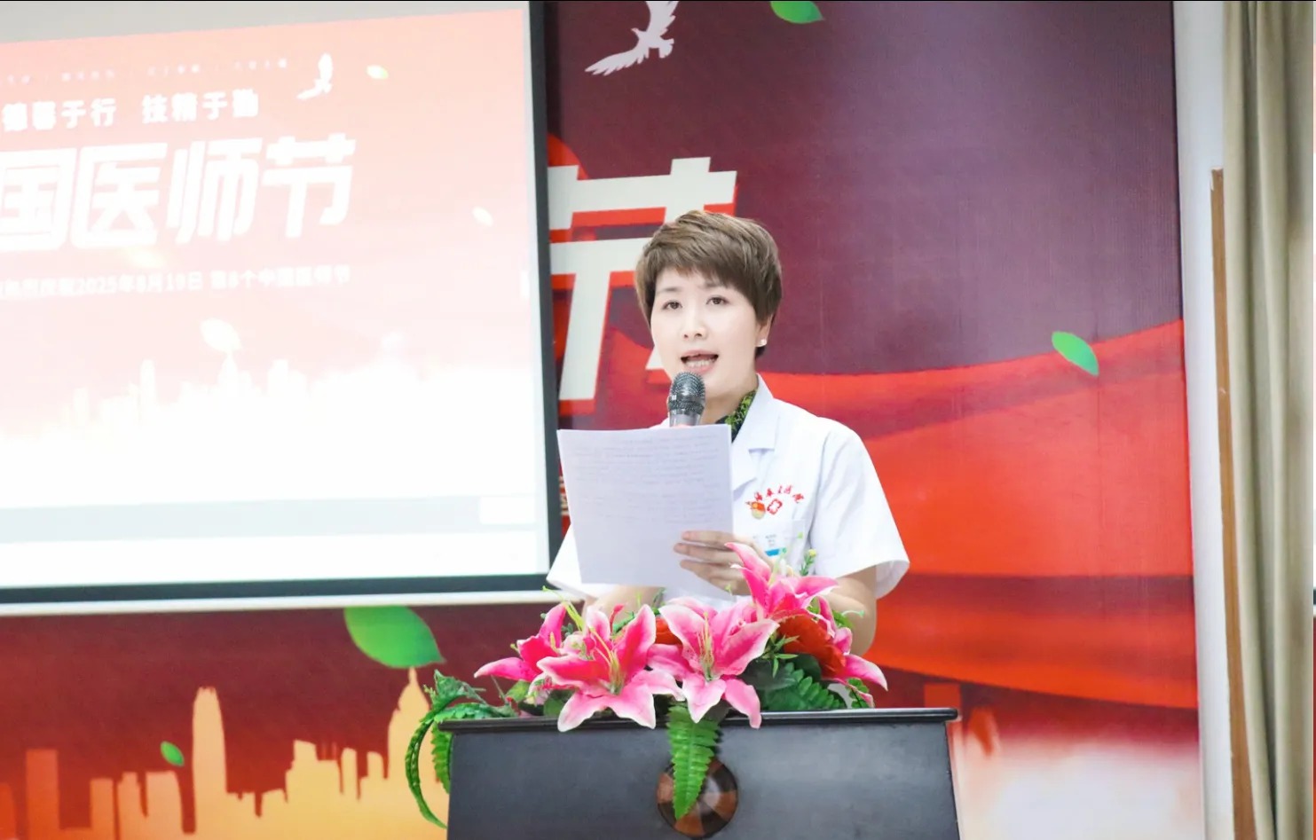 八月的风裹挟着盛夏的热忱,桂花的暗香里藏着对医者的敬意。8月19日下午三点半,上海奉爱医院大会议室暖意融融,全院同仁欢聚一堂,共同庆祝第8个中国医师节。以“德馨于行,技精于勤”为主题,这场盛会串联起誓言、歌声、感悟与祝福,为每一位坚守“健康所系、性命相托” 誓言的医师,献上了最真挚的礼赞。